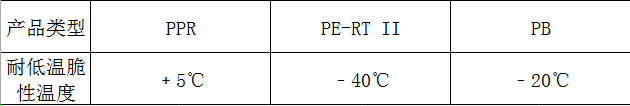 1、 耐低温脆性,PE-RTⅡ本身隶属于PE一系列的改性型产品,所以在整个结构中与PE结构相似,低温脆性低达-40℃。